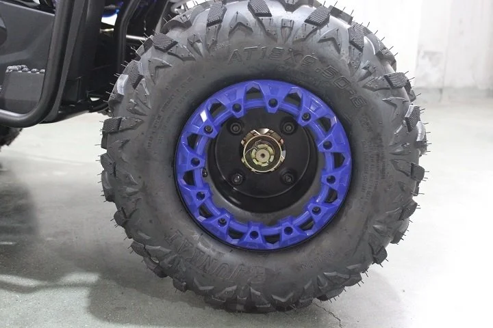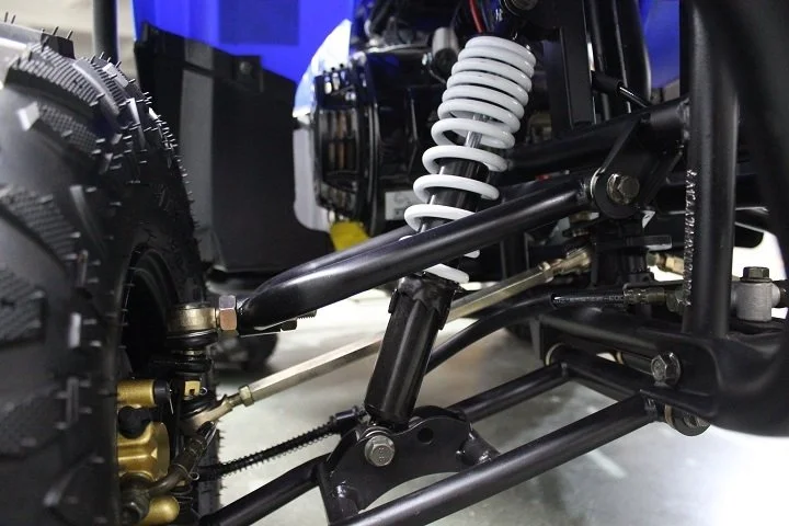 Suspension: The ATV is equipped with a Double A-Arm suspension system with Coil Over shocks. This type of suspension provides a smooth and controlled ride by minimizing impacts and vibrations from rough terrain. The coil-over shocks are adjustable, allowing riders to fine-tune the suspension to their preferences and the specific terrain they are riding on.