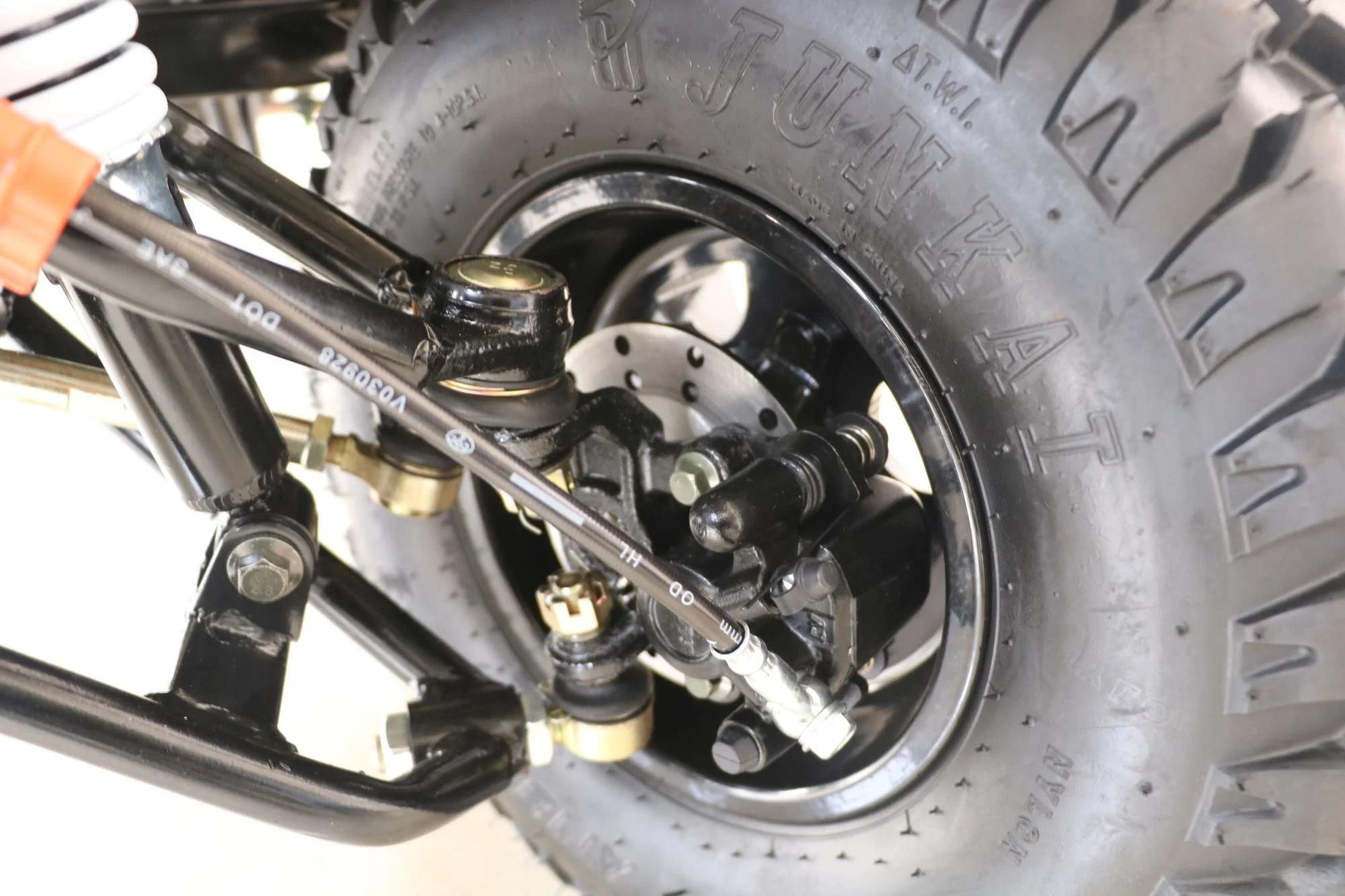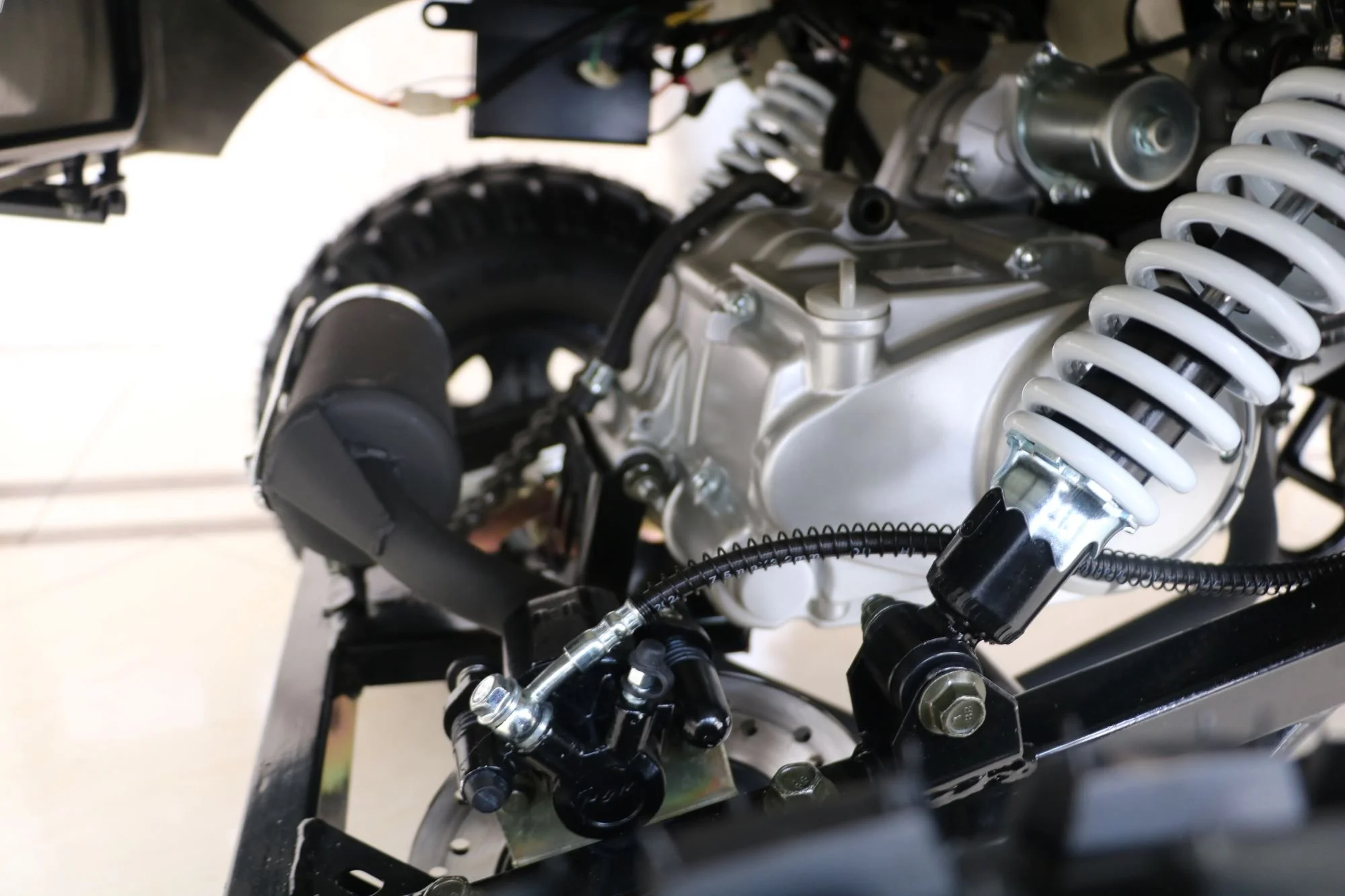The Muddy-200cc Deluxe Go Kart offers an exhilarating experience with a maximum speed of 37.28 miles per hour. Its reliable braking system features front and rear hydraulic disc brakes, ensuring precise control and safety. With an efficient oil cooling system, the engine stays at optimal temperatures during extended rides. This go-kart promises both performance and durability, making it an ideal choice for enthusiasts seeking excitement on the track.